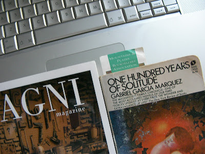 Since my gaze for a long time has been locked onto this MacBook Pro screen, I tried turning back to my first love, print on paper. I picked up a novel that’s been following me around for years, unread, One Hundred Years of Solitude, a 1967 historical magic realism romp by Nobel prize winner Gabriel Garcia Marquez. I also began reading, cover to cover, the current issue of AGNI Magazine, edited at Boston University by my friends Sven Birkerts and Bill Pierce. Darlene left for St. John, USVI, the day before yesterday to visit her sister, so I’ve got five days of solitude before I follow her to the islands. I figure five days will be enough to look around in some new directions. To round out this morning’s Sunday rumination, I’ve brewed a pot of Peet’s House Blend, and I’m listening to a Pandora station based on the music of Dr. John.